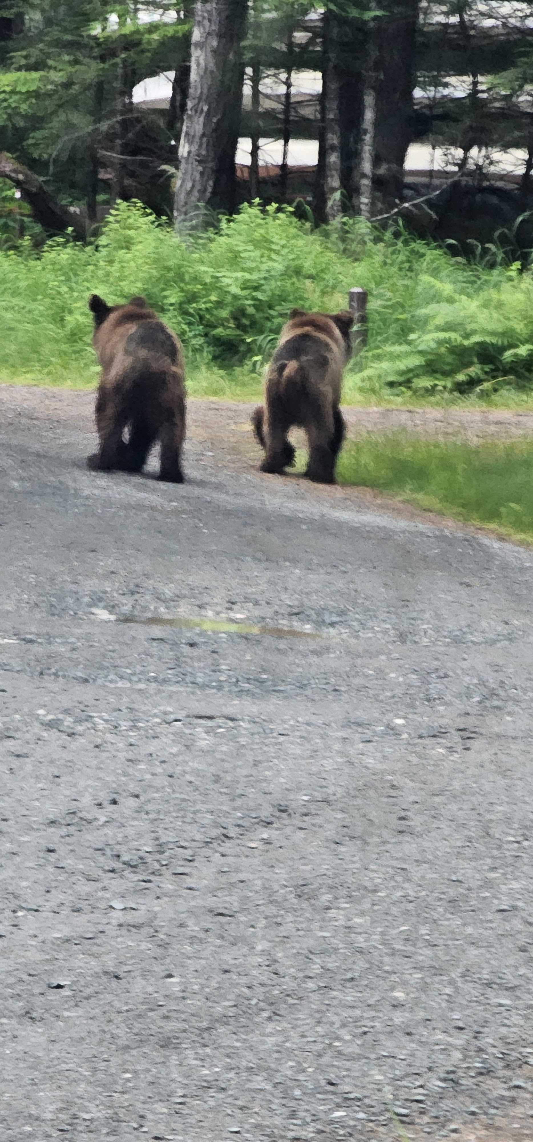 Ferry to Haines had a unique sideloading into the hold. To depart the ferry, each vehicle had to back up and turn around. That's tricky for the trucks pulling trailers. Our campground for the night was Chilkoot State Recreation Area. Remote and GRIZZLIES Dumpster Diving!